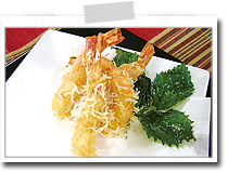 衣のかたさはお好みですが、一般的にえびやきすなどはさらっとした衣で揚げ、根菜やかき揚げなどはややかための衣がむきます。 |