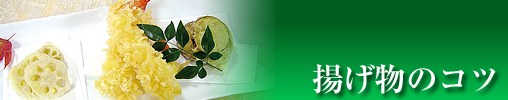 | 天ぷら、から揚げ、フライなどの揚げ物は揚げたてが一番おいしいです。揚げ物はひと手間かかる調理法ですが、コツを覚えて市販のお惣菜では味わえないおいしい揚げ物を家庭でぜひ召し上がってください。 |