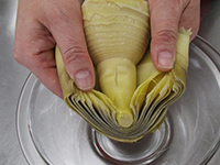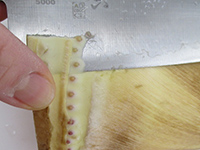 根元に行くほど浅く包丁を入れる。