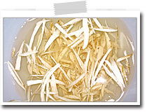 水を1~2回替えて、あく抜きをする。水にさらしすぎると香りが抜けてしまうので、10分程度が目安。 |