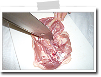 骨と骨の間の関節に包丁を入れ、切り離す。