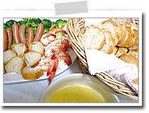 フランスパンは一口大に切り、ゆで野菜(ブロッコリーなど)、シーフード(えびなど)、ソーセージは、事前にゆでて準備しておく。 |