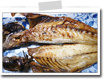 アジの干物を焼き、皮と骨を除き、身を細かくほぐす。 (小骨が残らないよう注意してください。あじの他、かますなど白身魚の干物でもおいしく作れます。) |