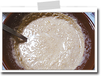 2のすり鉢に焼いた味噌と砂糖を加え、だし汁でよく溶きのばす。 |