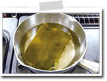 昆布を水につけて柔らかくすることで、 うま味を引き出します。 |