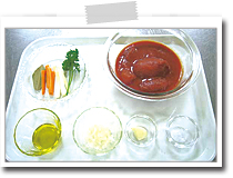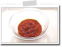 ピザソースを作る。基本のトマトソースにオレガノ、バジル、塩を加え、味をととのえる。 |