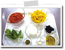 | ペンネは穴の中に熱湯が入り込みますので、ゆで上げや湯をきる時にやけどをしないように注意してください。 |