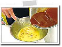 3の卵黄に2のチョコレートを少しずつ入れ、混ぜ合わせる。 |
