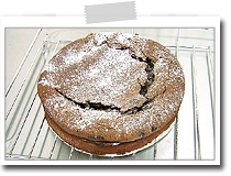 型から外し、側面のオーブンシートをはがし、ケーキクーラーや網などの上にのせて冷ます。 |