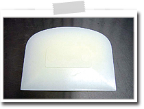 プラスチック製の薄いもので、ドレッジとも呼びます。直線部分ではバターのカット、焼く前のケーキ生地の表面を平らにならす、スコーンなどの生地を切り混ぜる、などの使い方ができます。