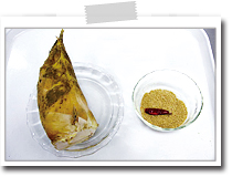 ゆでたたけのこは、たけのこご飯、筑前煮、若竹煮、土佐煮、若竹汁などの料理にしていただきましょう。 |