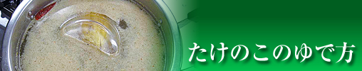 大きな鍋に水をたっぷり入れ、米ぬか、赤唐辛子とともにたけのこをいれて強火にかける。吹きこぼれないように途中で中火にし、40分~1時間ゆでる。 |