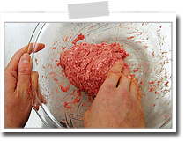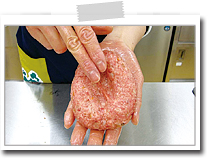 これを交互に10回くらい行うと、ハンバーグの中から余分な空気が抜けます。 |