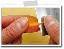 繊維に沿って切ったあと、さらに横方向からも切り込みを入れて切る方法もあります。 |