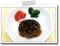 | ごはんにもパンにもよく合う、照り焼き味のハンバーグです。 |