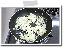フライパンにサラダ油大さじ1/2を入れてあたため、玉ねぎを入れ、中火で炒める。