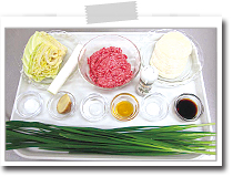 6にキャベツ、にら、長ねぎ、生姜汁、 Aの調味料を加え、まとまるまで混ぜ、 具を作る。 |
