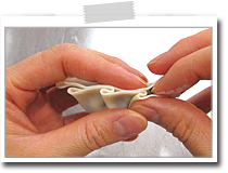 同様にしてひだを3~5本作り、 最後に両側の皮をしっかり押さえる。 |