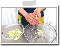 最後にザルに残ったキャベツも集めて水けを絞ると無駄になりません。 |