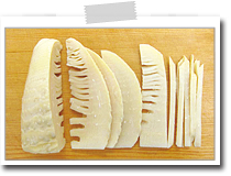繊維に沿って切るとしゃきしゃき感が出ます。 |