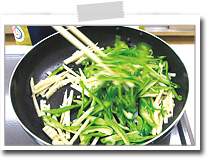 一気に炒め合わせて仕上げる料理の場合には、炒める前に合わせ調味料を用意しておくと手際がよく、短時間で作れるのでしゃきっとした仕上がりになります。 |