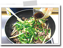 炒める際にかき混ぜすぎると牛肉が崩れてしまうので注意してください。 |