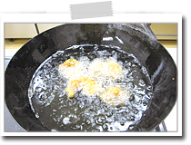 鍋またはフライパンに5cmくらいの深さになるようサラダ油を注ぎ、強火にかけてあたためる。 |
