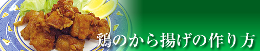 | 揚げ物は作りたてが一番おいしく味わえますので、ぜひご家庭でジューシーでカリッとしたから揚げを作ってみてください。衣(ころも)は、薄力粉、片栗粉(竜田揚げ)、片栗粉に卵を加えるものなどがありますが、ここでは油が汚れにくい卵入りの衣で作る方法をご紹介します。 |