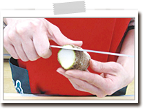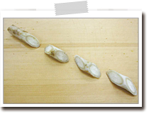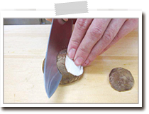 しいたけは石づきを切り落とし、そぎ切りにする。 |