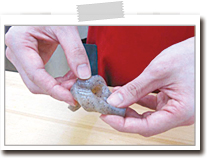 里芋は滑りやすいので、あらかじめ洗って乾かしておくとよいです。おもてなしやお正月のお祝いに用意する場合は、亀甲と呼ばれる六角形にととのえるとよいでしょう。里芋は下ゆでや塩でもむなどの方法で、ぬめりをとることもありますが、今回は少量なのでそのまま使います。 |