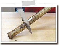 乱切りは、ごぼうを斜めにして一度切り、