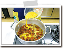 卵は一ヶ所に注ぐのではなく、少しずつ円を描くように注いでください。