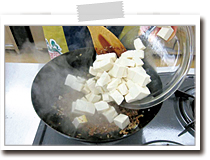 木綿豆腐とCを入れて4~5分煮込む。 |