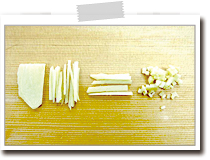 にんにく、生姜の薄切りはそれぞれみじん切りにする。 |