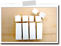 木綿豆腐は厚みを半分にし、1.5~2cm角のさいの目切りにする。 |