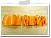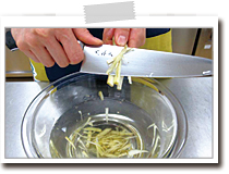 にんじんは長さ3cmくらいで太めのせん切りにする。 |