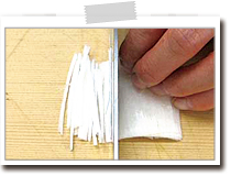 白髪葱は、さばを煮ている間に準備しておきましょう。ねぎの中心部分はさばと一緒に煮ると臭み消しになります。 |
