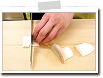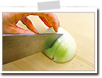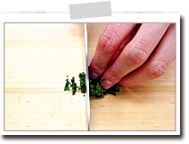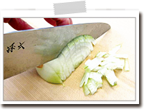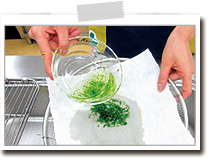 パセリはみじん切りにした後、水にさらし、ザルにキッチンペーパーを広げてこし、水けを絞って使いましょう。切ってそのまま使うと、料理にパセリの葉の色が移ったり、青くさみを感じる場合があります。 |