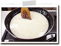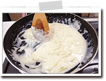 | 加熱しなくても食べられる素材ですので、切った後はそのままホワイトソースと合わせて構いません。香ばしさを出したい場合には、炒めても良いでしょう。 |