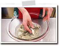 きのこ類は洗うと水っぽくなってしまうので、洗いません。 |