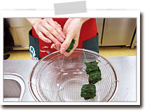 | 柔らかくなるまでゆでるか、電子レンジで加熱して食べやすい大きさに切りましょう。 |