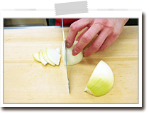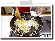 | 2cm角くらいに切り、炒める際、塩、こしょうで軽く下味をつけておきましょう。 |