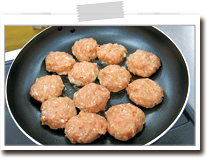 4のフライパンにサラダ油大さじ1を足し、つくねを並べ入れ、焼き色がつくまで焼く。