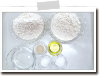 材料はすべて計量して揃えておく。強力粉と薄力粉は混ぜてふるっておく。