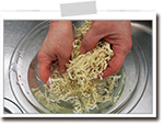 切り干し大根は手早くもみ洗いをして絞る。