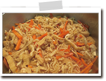 干し椎茸は戻してせん切り、白滝は茹でて4~5cmに切ってAで煮ておく。