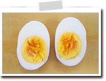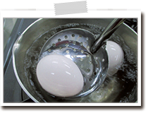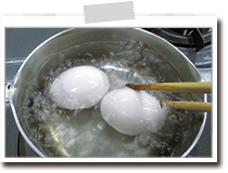 ※卵が冷たいとお湯に入れた時に割れてしまうため卵は室温に戻しておきます。 |