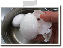 ・たまごは冷水にとることで身が縮み手早くひびを入れることで水が殻と身の間に入り
