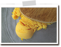 ※裏ごし器で裏ごす時は布巾を広げ裏ごし器よりも小さい皿を用意すると裏ごしやすいです。 |
