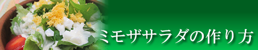 黄色・白の彩が華やかなサラダです。卵のゆで方をマスターすると、とっても便利です。ミモザサラダは黄色い小さな球場のふわふわしたミモザの花に似ていることから名づけられました。